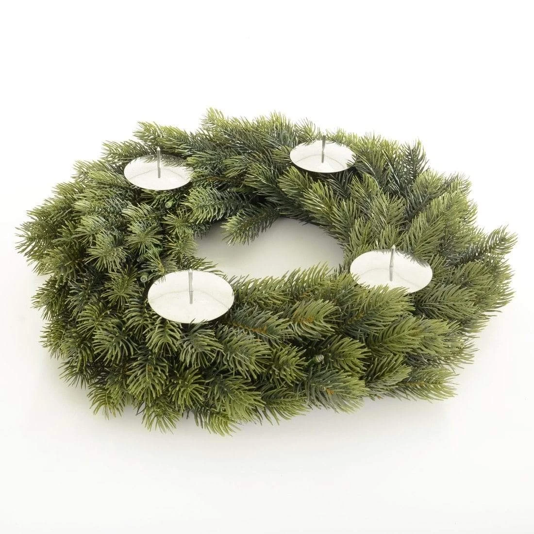 The wreath has 4 metal candle holder spots which add to it’s classic warm look. These holders will take any size of pillar candle, allowing you to mix the wreaths look time and time again.