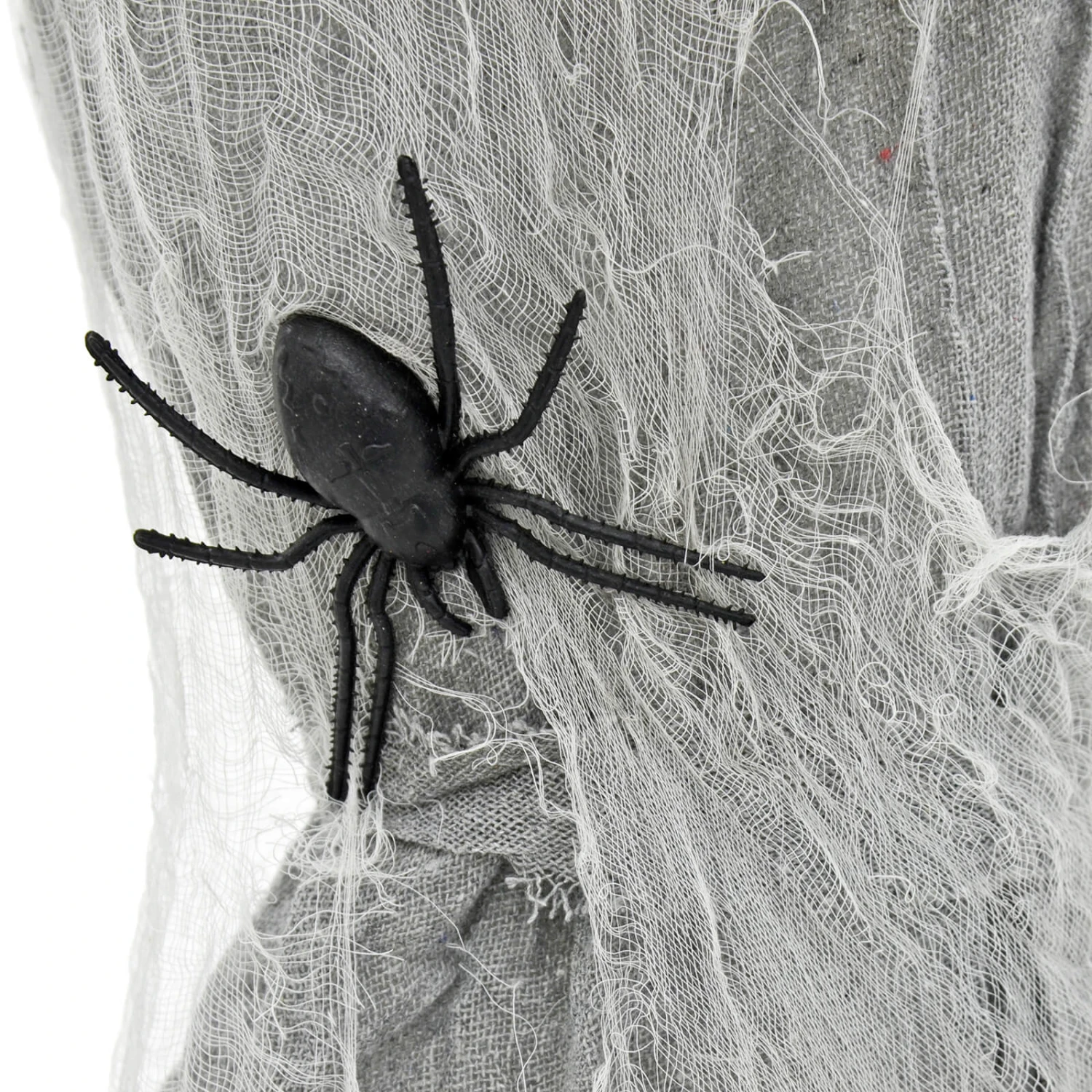 • Grey fabric with white netting and spiders