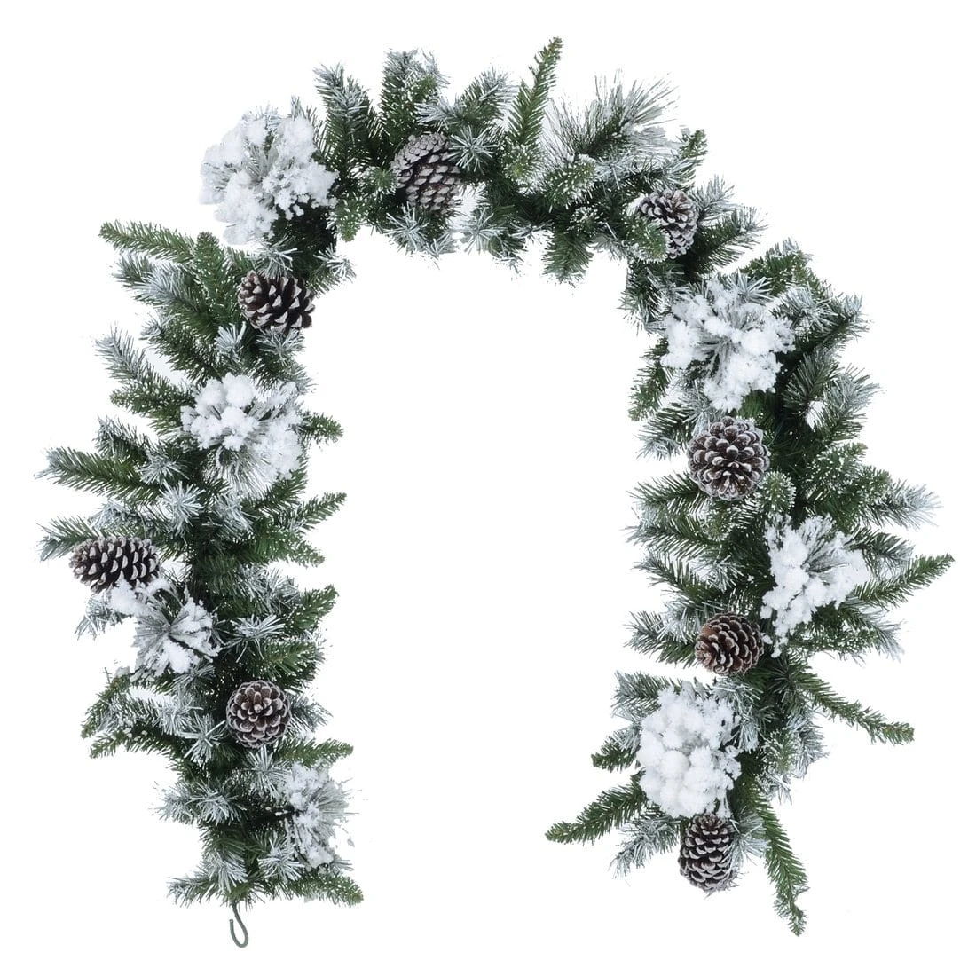 The gorgeous 6ft long decoration is made with artificial flocked green pine branches to give a snow covered wintry look. Decorated with traditional pine cones this Christmas garland is perfect for wrapping round bannisters, draping over mantelpieces or decorating doorways around your home throughout the festive season.
