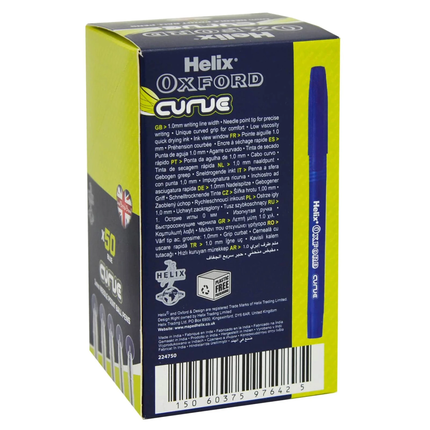 Always have a pen handy with this box of 50 Curve Pens from the Helix Oxford range. The Curve pens have a unique curved design grip for comfort. The needle ball point ensures precise writing.