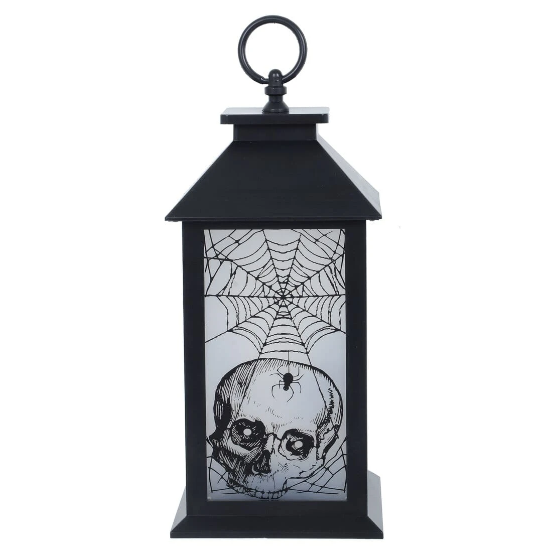Dress your windows for Halloween with our spooky glowing lanterns! Each lantern is made from black plastic and measures approximately 30cm tall. The lanterns have four plastic windows with either a black witch or skull design on each one, and they glow from the inside with 4 static yellow LED lights. A fantastic accessory for your home on the run up to Halloween!