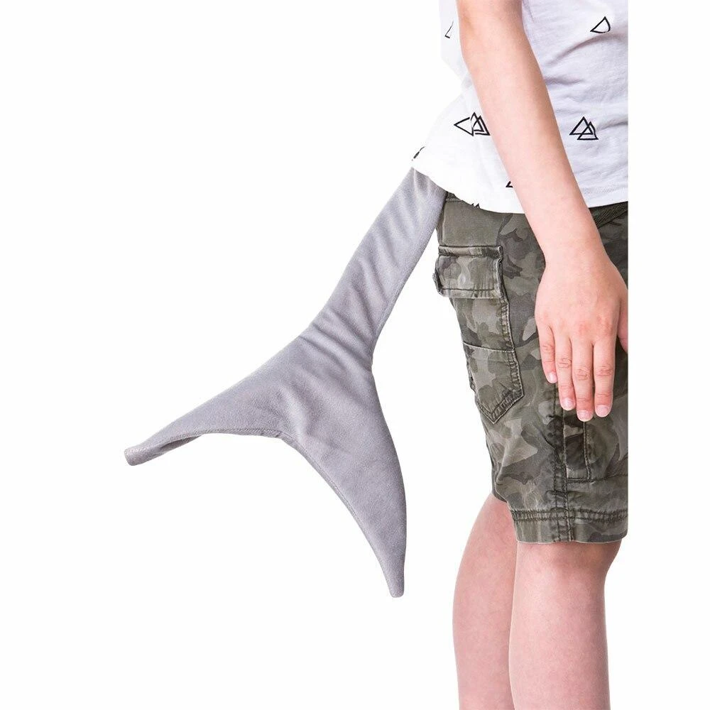 The head is padded and comes with a hook and loop fastener under the chin to secure in place and the matching tail has a loop for attaching to a belt or clothing.