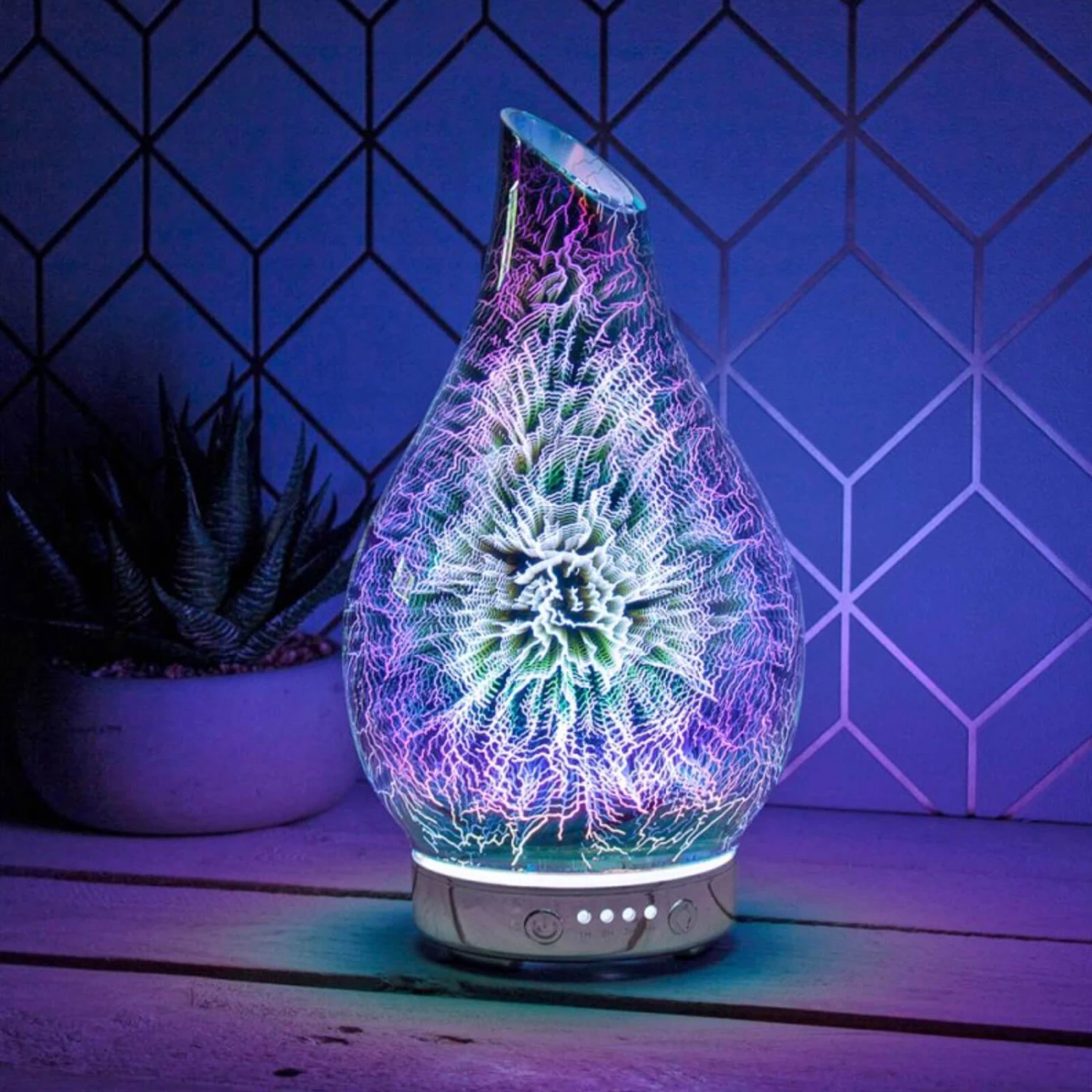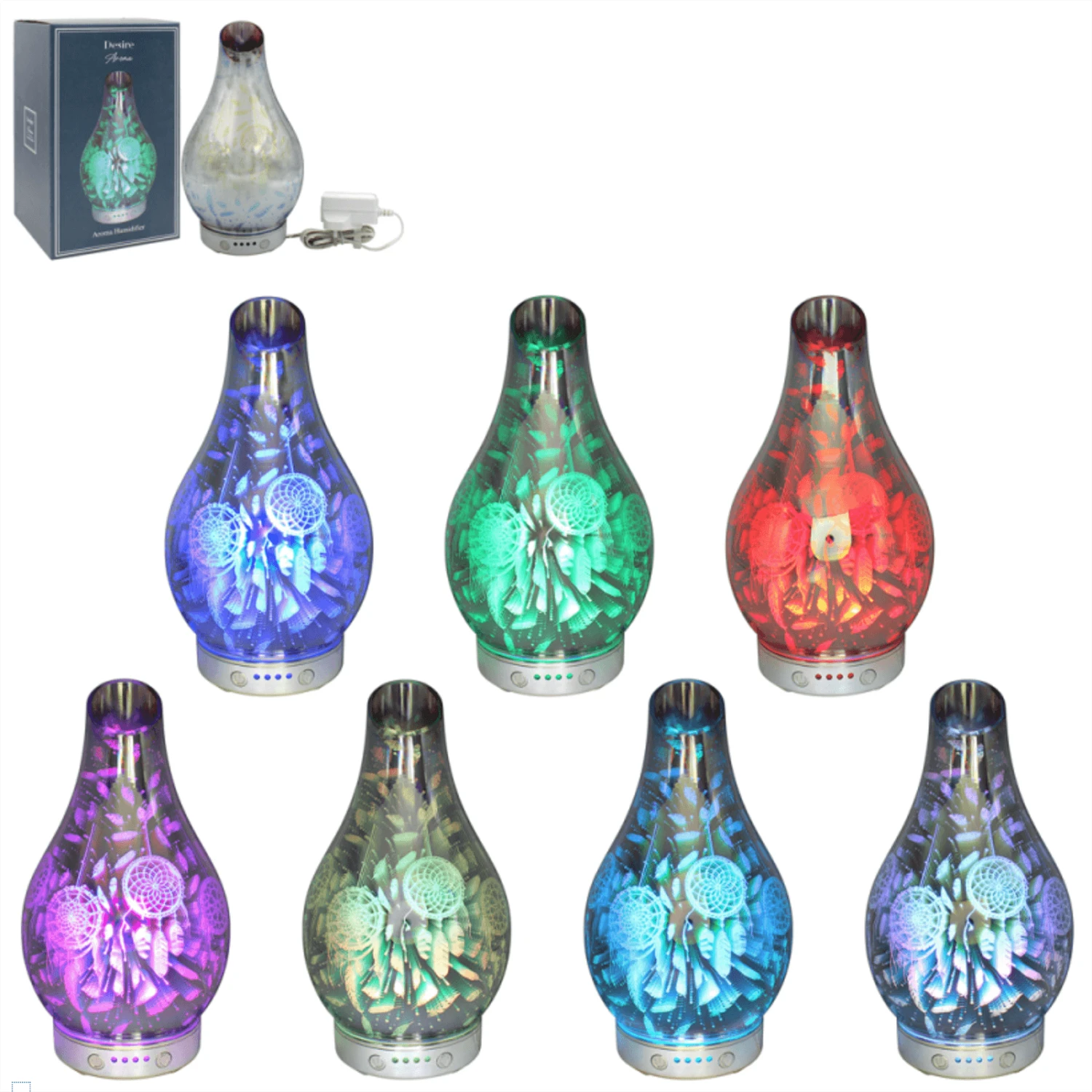 The plug in humidifier lamp features a stunning 3D design. The colour change LED light makes an excellent focal point in your living room, bedroom or hallway. Available in a choice of designs. Great as a housewarming gift!