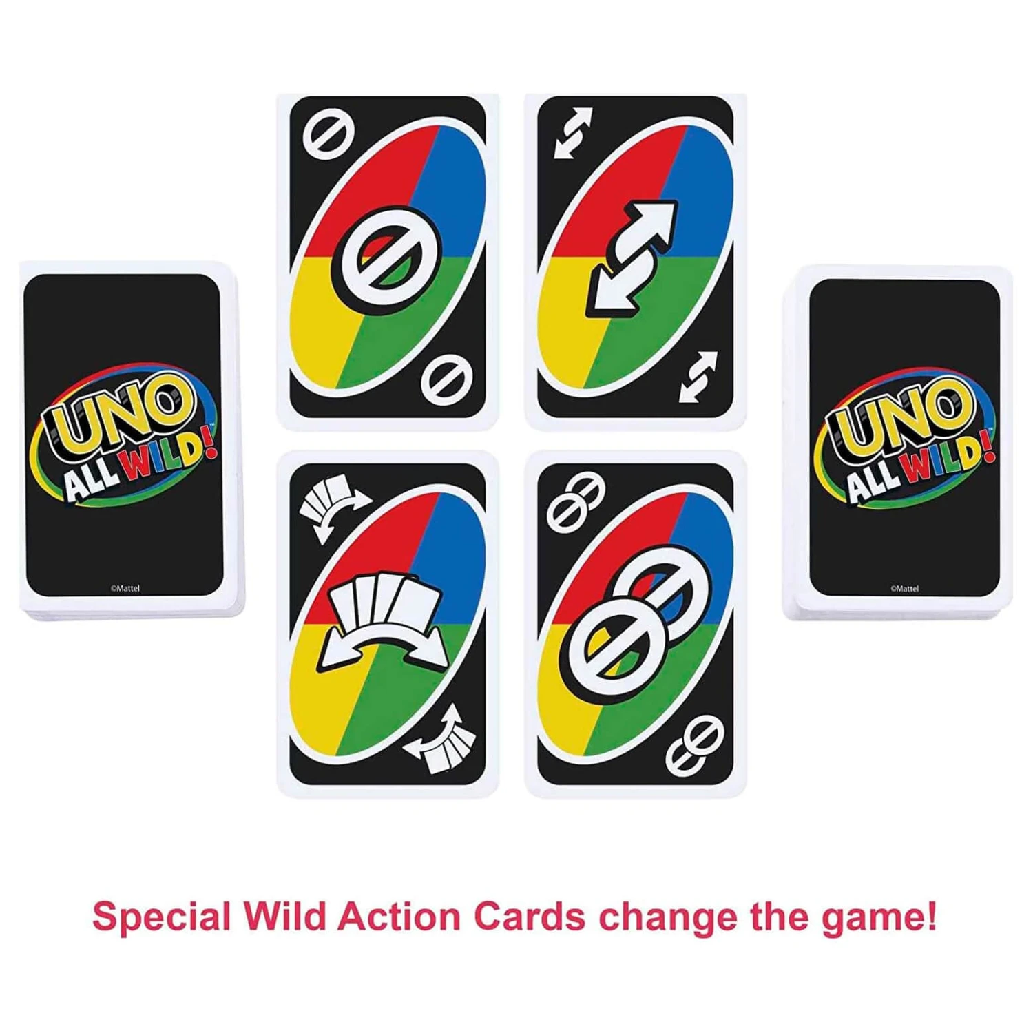 This variation of the fun family game of UNO might sound easy because every card is wild. Far from it. Special Action Cards can really change the game, so pay attention! Like always, when you’re down to your last card, you still must yell “UNO!”.