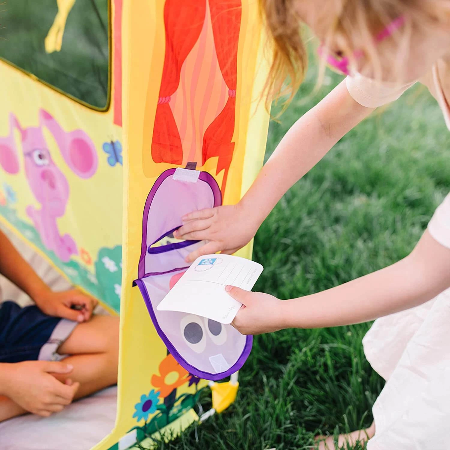 Set up house and let imaginations grow in the roomy and exciting Blue’s House play tent!