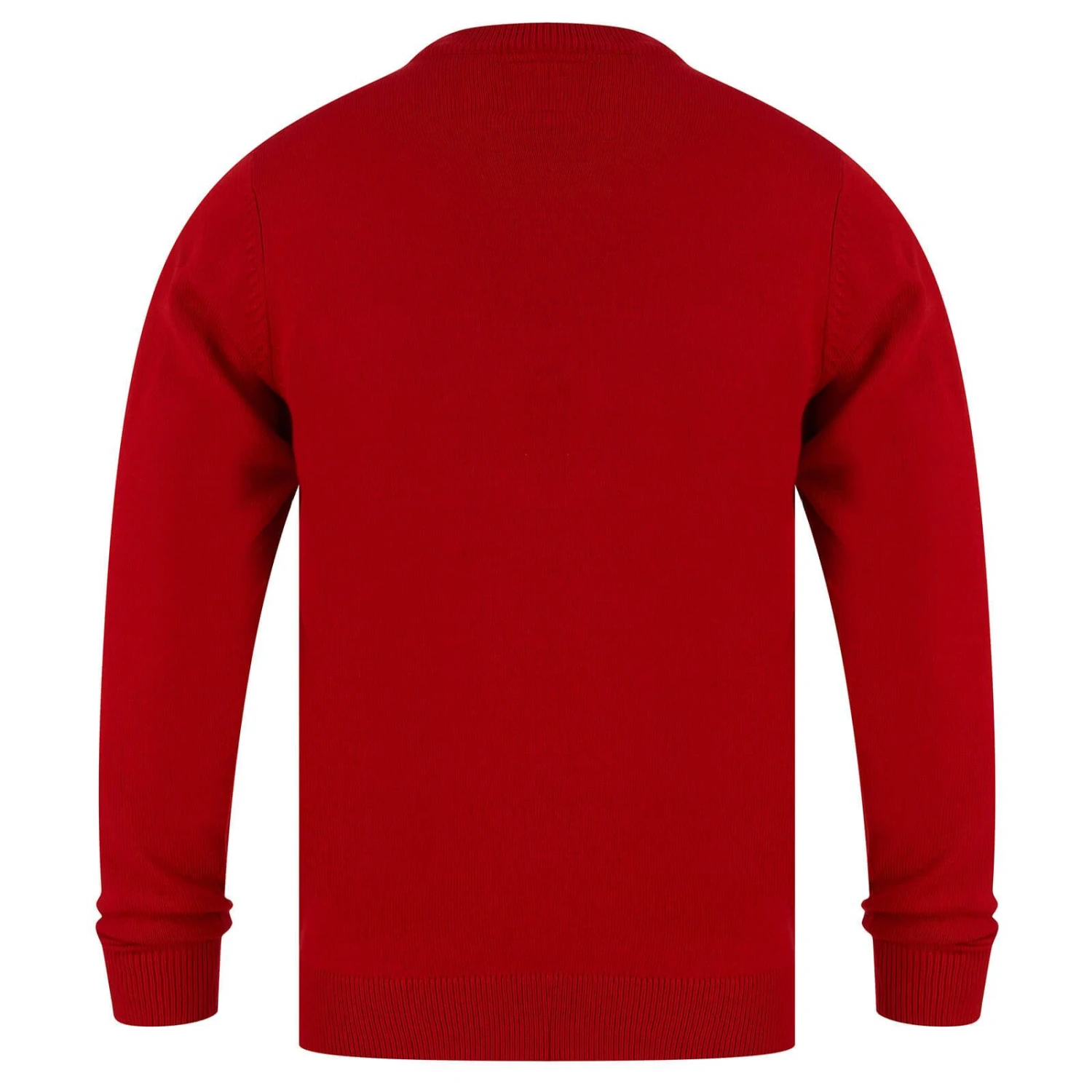 Why not take him with you wherever you go with this fabulous novelty mens xmas jumper. It features Rudolph getting into the festive spirit with a red and white stripe scarf and some baubles hanging in his antlers. There are even some snowflakes to finish off that Christmas look.