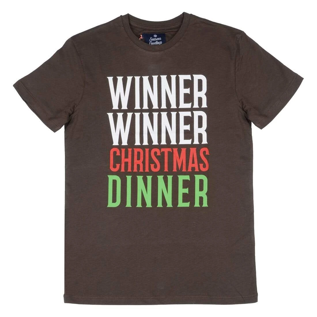 • Dark brown tee with slogan – Winner Winner Christmas Dinner