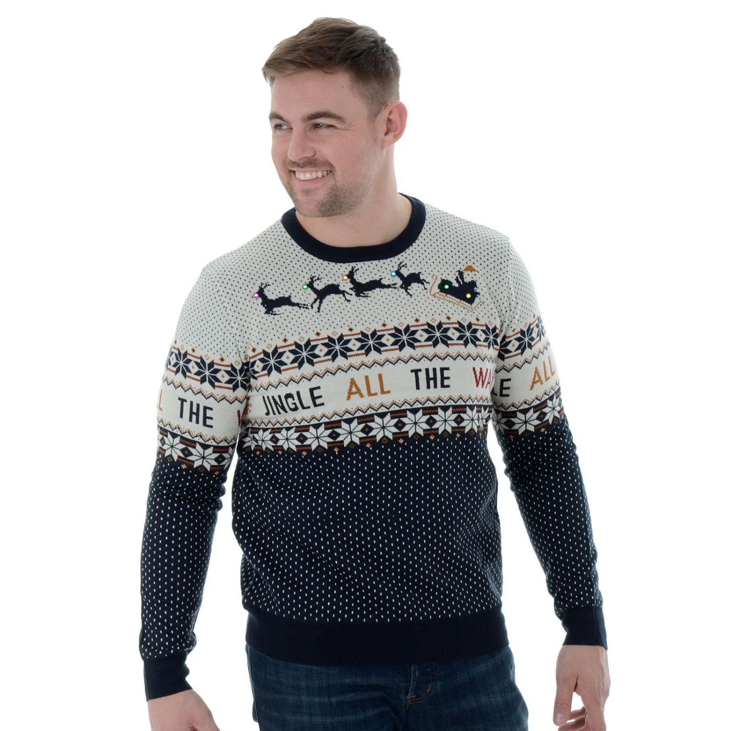 Get your wardrobe ready for the festivities with this funny light up Christmas jumper for men.