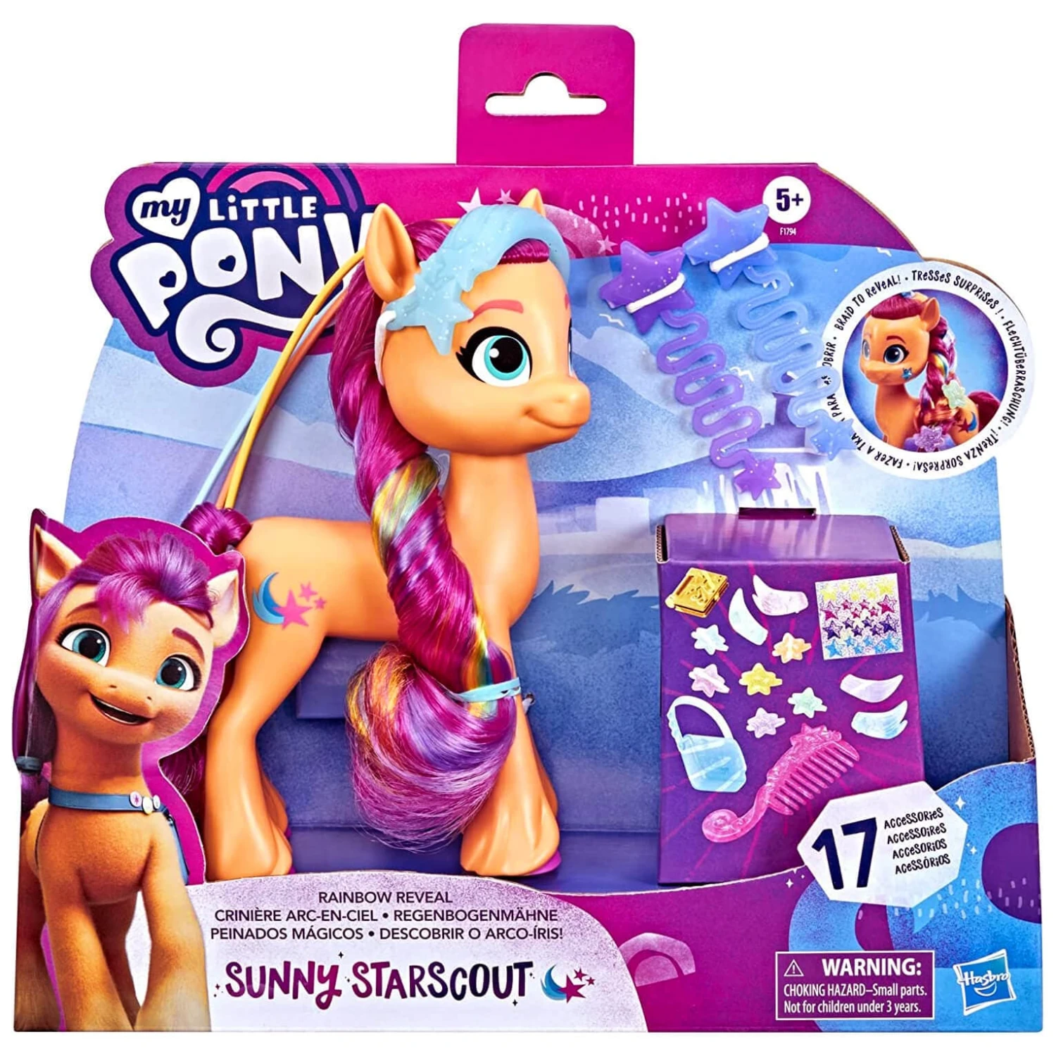 Discover a colourful surprise under her signature braid with Rainbow Reveal Sunny Starscout, inspired by the My Little Pony: A New Generation movie.