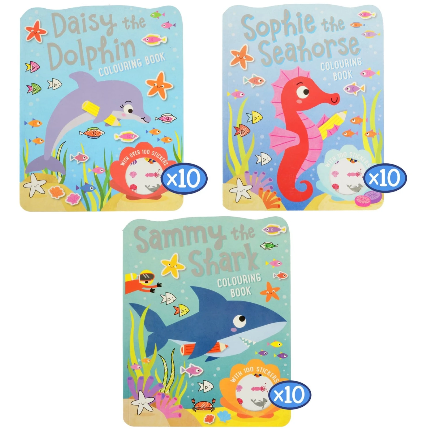 Your creative little artist will love this ocean theme colouring book. With 72 pages of sea creature designs to colour in and over 100 stickers to use in the book. Choose from Sophie the Seahorse, Sammy the Shark or Daisy the Dolphin cover designs. Suitable for ages 3+.
