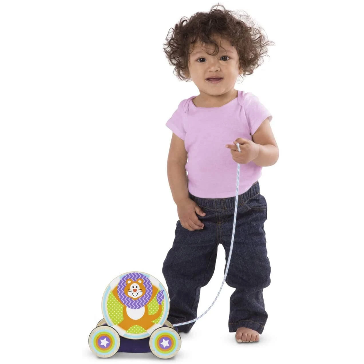 Take music-making on the move with this rainbow xylophone pull along toy that rings as it spins on a sturdy wheeled base. Little musicians will love discovering the bright colours, patterns, and musical sounds made by the removable chunky wooden ball. Suitable for ages 18m+