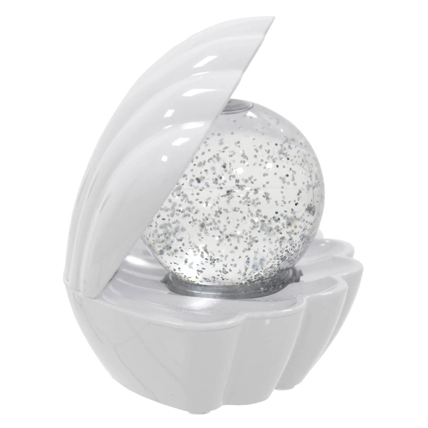 Switch on and watch the water inside the globe move and make the glitter swirl and sparkle in the light. The clam shell has an LED light that changes through 7 different colours. A great way to relax after a long day.