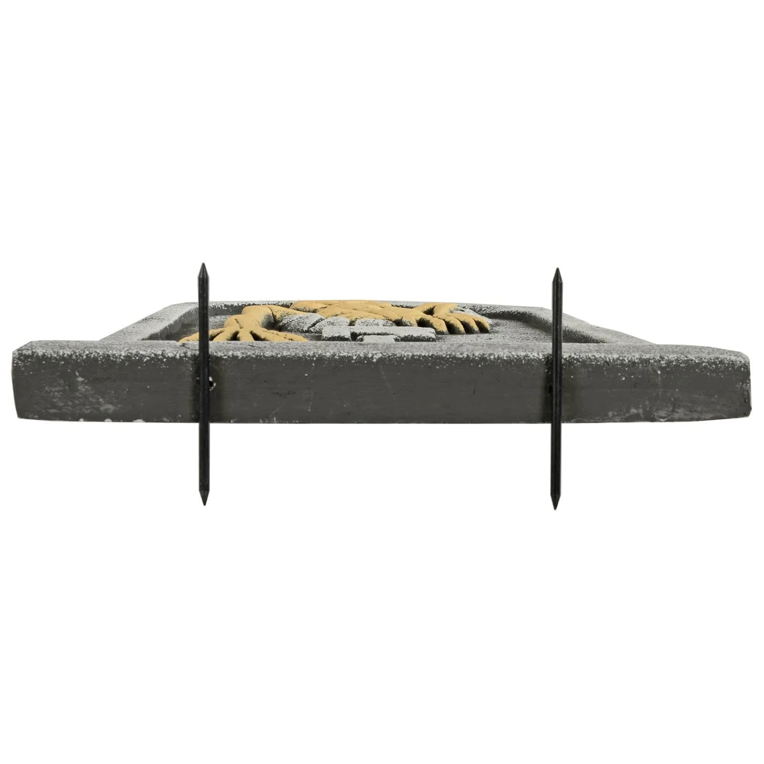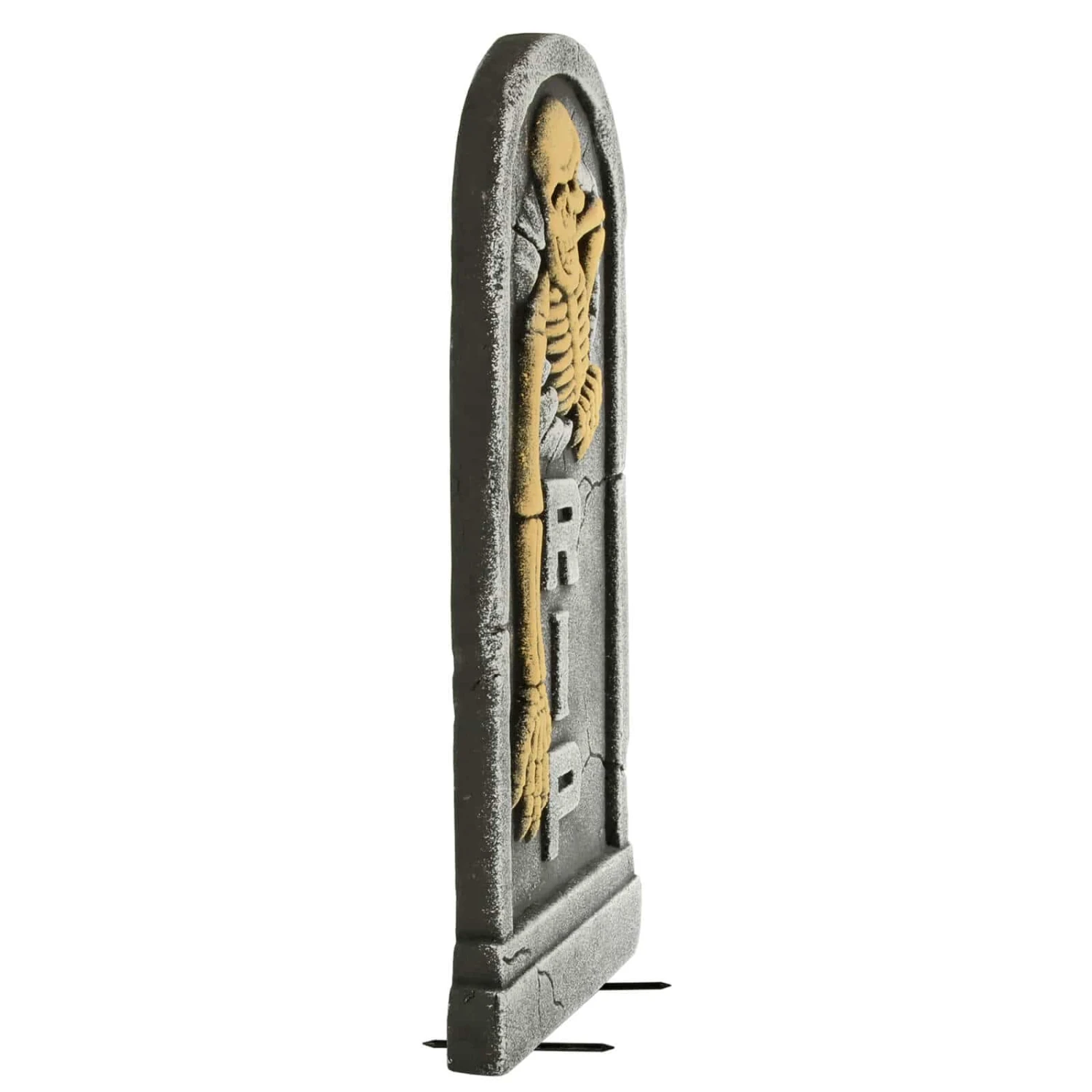 This large 55cm (22″) tall, arch shape headstone prop is designed with a skeleton figure climbing through from the underworld. The weatherbeaten finish makes it look so authentic. Made from water resistant polyfoam it’s suitable for indoor and outdoor use.