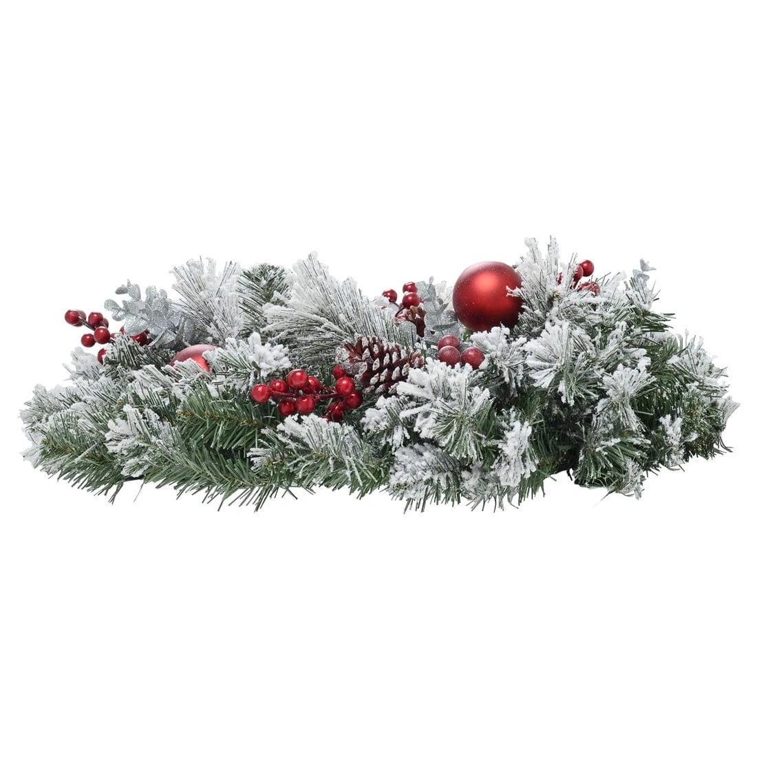 Welcome guests to your home this Christmas with this stunning white, grey and silver wreath from Mr Crimbo. The artificial mixed pine foliage is covered in flocked snow and decorated in festive red accessories, including matte red baubles, red berry clusters and red pinecones. It will look stunning on your door or above your fireplace over the festive season!