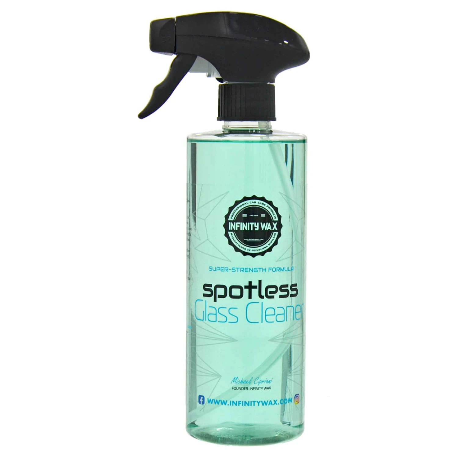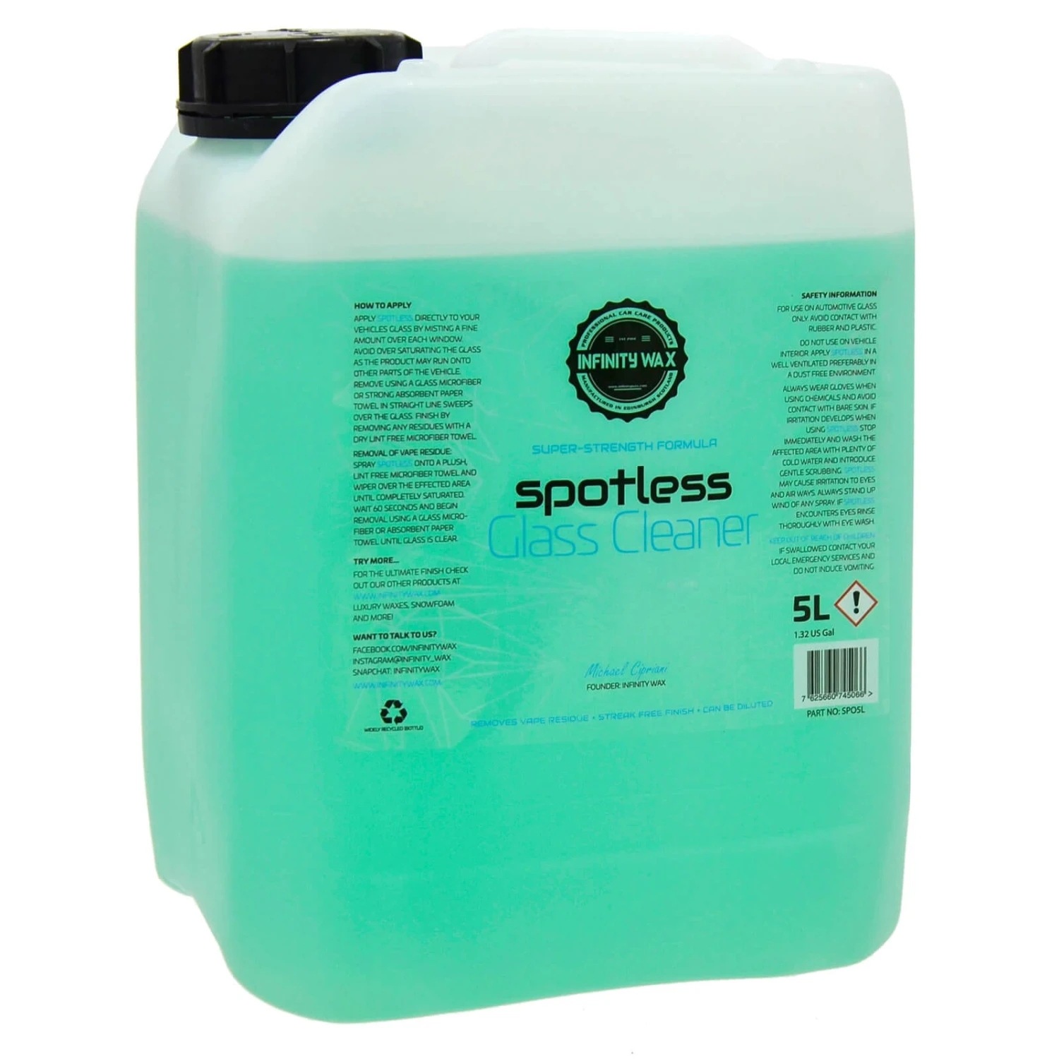 Spotless Glass Cleaner from Infinity Wax is a professional strength streak free car glass cleaner that cleans tough grease and residues, then evaporates without a trace. Available in an easy to use 500ml spray bottle or a 5L extra value container.