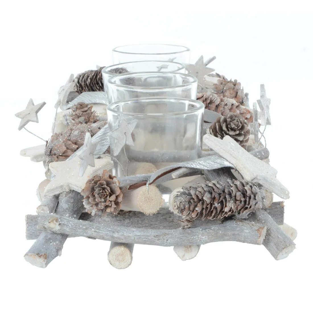 This rectangle Christmas decoration comes with 4 clear glass candle holders for your favourite tealight candles.